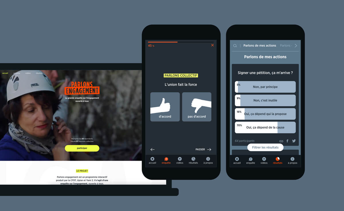 "Let's talk about involvement" is an interactive program produced by the CFDT, Upian and Yami 2. It is opened to everyone, whatever your level of involvement in associations, politics, trade unions or civic life.